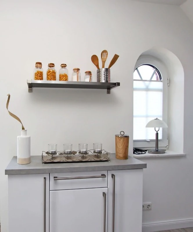 Die moderne Einbauküche wurde offen gestaltet und bietet Ihnen alle Annehmlichkeiten für eine sorgenfreie Selbstversorgung. Hierzu gehören neben dem Backofen und dem Cerankochfeld auch ein Kühlschrank mit Gefrierfach und ein Geschirrspüler.