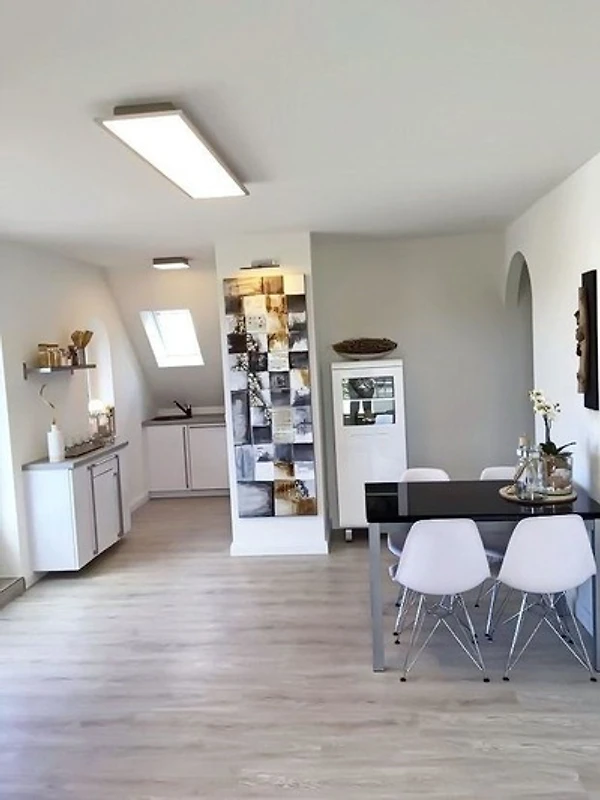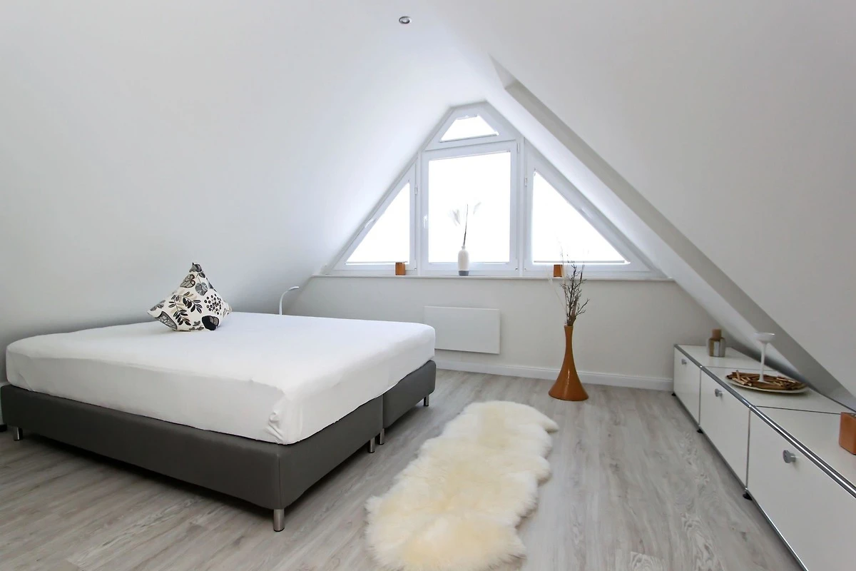 Das neuwertige und wunderbar helle Appartement Strandlicht (DTV****) bietet auf 65 Quadratmetern reichlich Platz für bis zu vier Gäste. Die Wohnfläche verteilt sich über zwei Ebenen im Ober- und Dachgeschoss des Hauses.