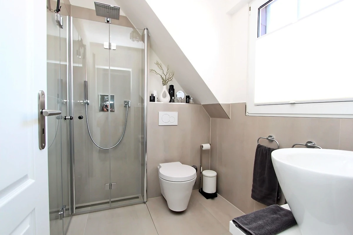 Das Badezimmer der Wohnung wurde mit einer bodentiefen Dusche ausgestattet.