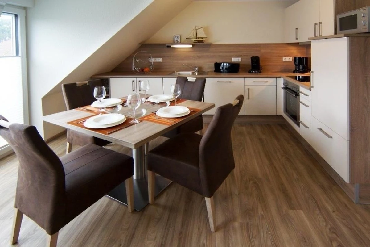 Modern und geschmackvoll eingerichtet bietet das Appartement Kettenstek die idealen Voraussetzungen für einen gelungenen Nordseeurlaub. Ideal geeignet für eine vierköpfige Familie erstreckt sich die Wohnung über insgesamt 64 Quadratmeter, die sich auf drei Zimmer und zwei Wohnebenen verteilen.