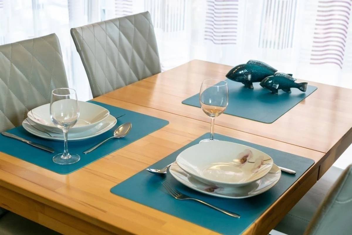 Der komfortable Esstisch bietet Ihnen genügend Platz, um einen Kinderhochstuhl zuzustellen.