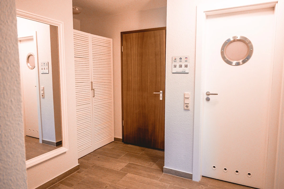 Die Ferienwohnung Bug befindet sich im Erdgeschoss des Hauses Störtebeker im Eingang 1. In unmittelbarer Nähe finden Sie weitere Ferienappartements unserer Gesellschaft. Eine gemeinsame Anmietung ist hier sehr gut möglich.