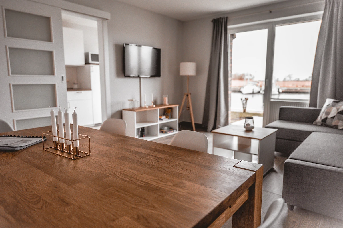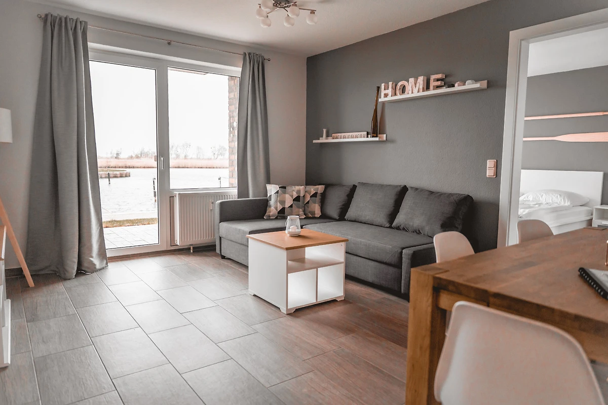 Bei unseren Ferienwohnungen in Ueckermünde handelt es sich um hochwertig eingerichtete Wohnungen, welche sich in direkter Wasserlage befinden. Alle Fenster der Schlafräume sind mit Fliegengittern und die Terrassentüren sind jeweils mit einer Insektenschutztür versehen. Eine Verdunklung ist in allen Schlafräumen möglich. Jede Ferienwohnung hat ein Babyreisebett und einen Kinderhochstuhl für Sie kostenfrei verfügbar. Pkw-Stellplätze sind in der Lagunenstadt am Haff optional buchbar. Das Rauchen ist in allen Ferienwohnungen nicht gestattet und Ihren Vierbeiner können Sie in viele Quartiere mitnehmen.