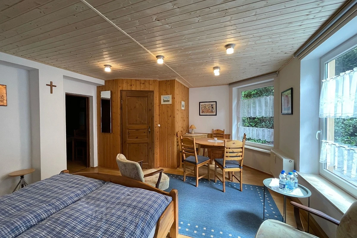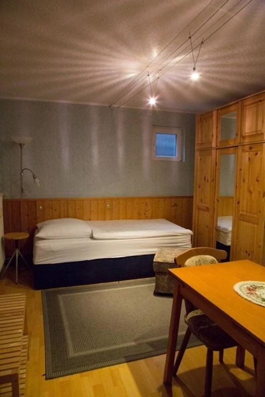 Zwei Wohn- und Schlafräume verbinden im Erdgeschoss Wohnbereiche mit einladenden Schlafmöglichkeiten. Während der erste Raum neben einem Doppelbett (180x200cm) auch mit einer Essecke und einem Fernseher möbliert wurde, erwartet Sie im zweiten Zimmer eine Schlafliege (90x200cm). Auch hier steht Ihnen ein kleiner Tisch zur Verfügung. während ein geräumiger Kleiderschrank für Staumöglichkeiten sorgt.