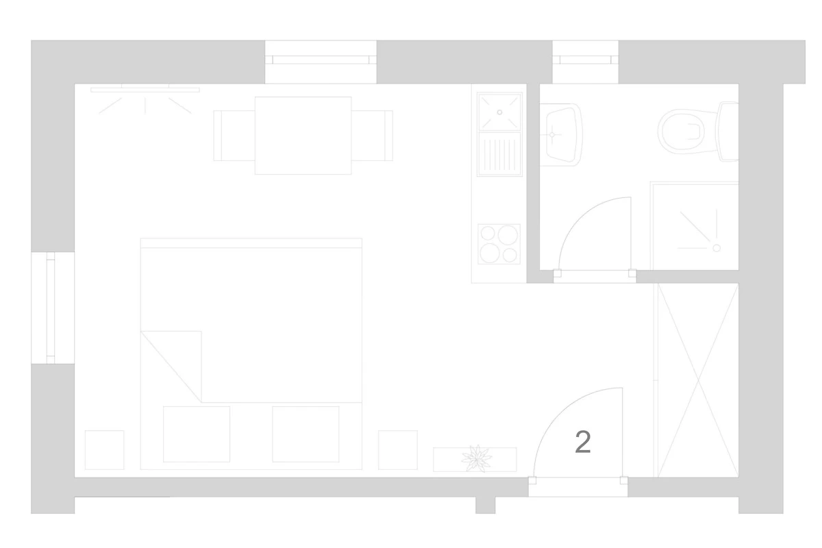 Ihr lichtdurchflutetes Doppelzimmer (Bett 180x200cm) verfügt über eine kleine, gut ausgestattete Küchenzeile für den täglichen Bedarf.