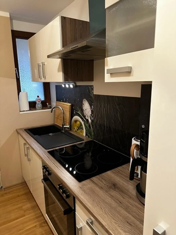 Kaffeemaschine und vielem mehr ausgerüstet. Das Schlafzimmer ist mit einem Doppelbett und reichlich