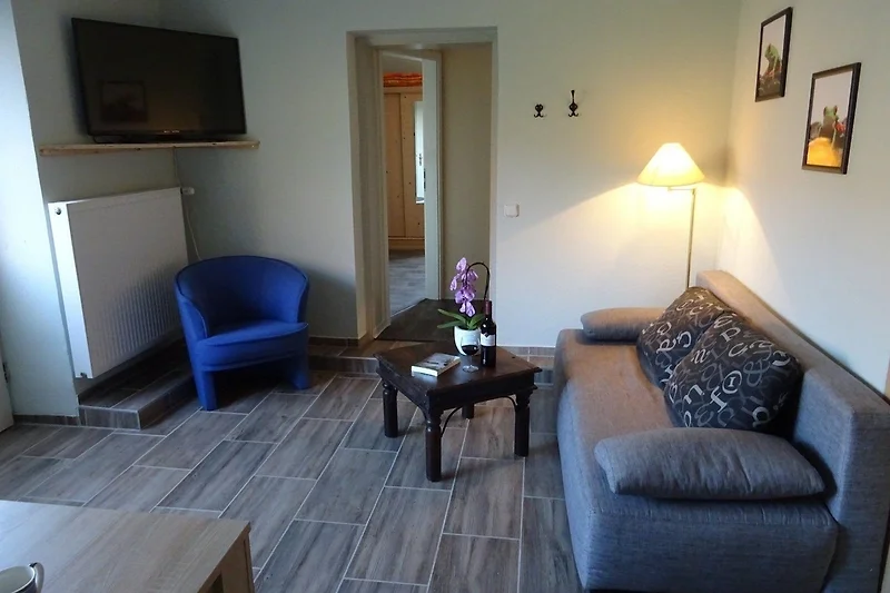 Der gemütliche Wohnbereich ist mit einer bequemen Schlafcouch eingerichtet, hier können Sie auch einmal einen ruhigen Fernsehabend verbringen. In dem ersten Schlafraum steht Ihnen ein Doppelbett zur Verfügung. Der zweite Schlafraum ist mit zwei getrennten Einzelbetten versehen.
