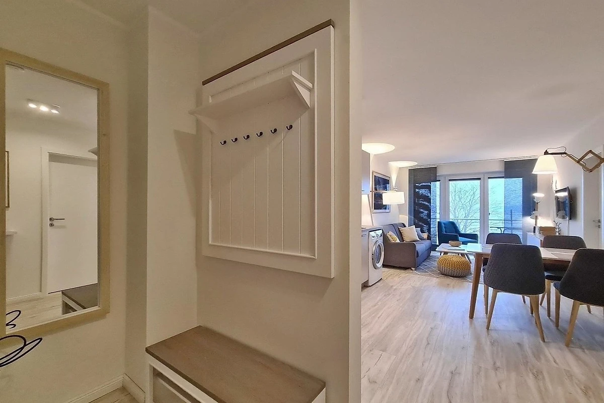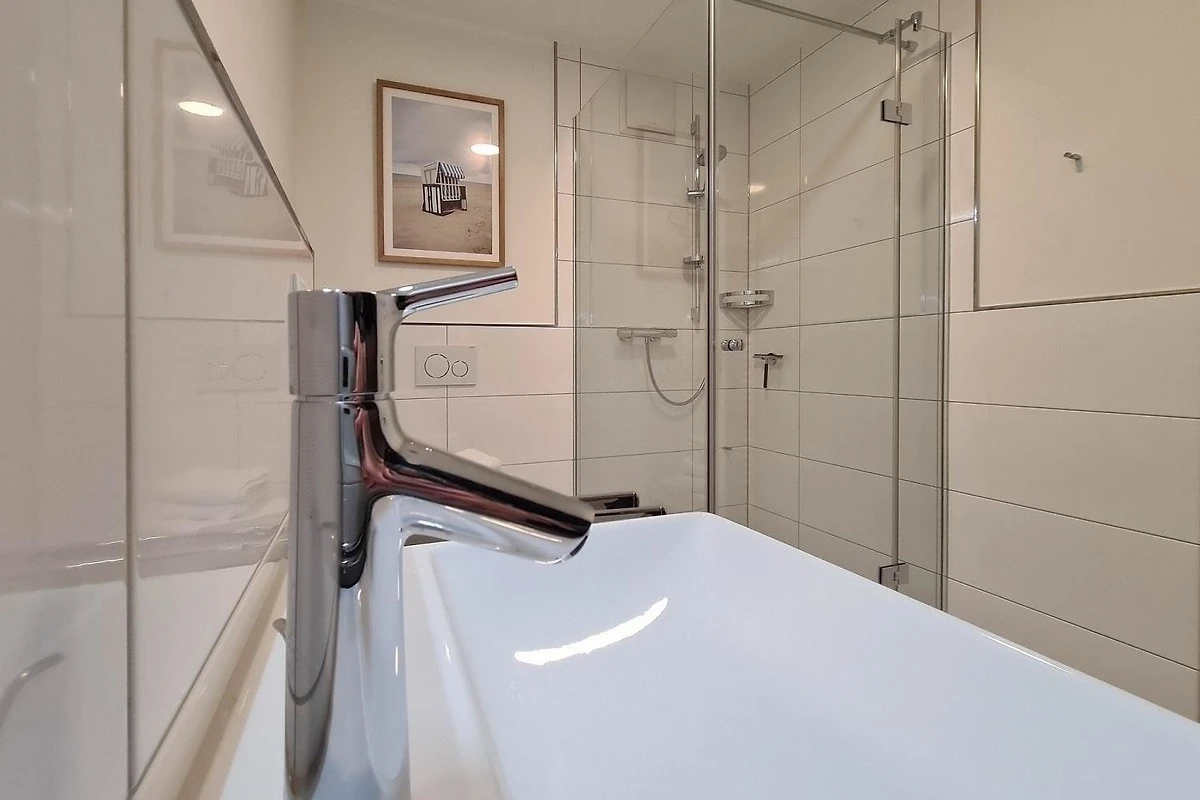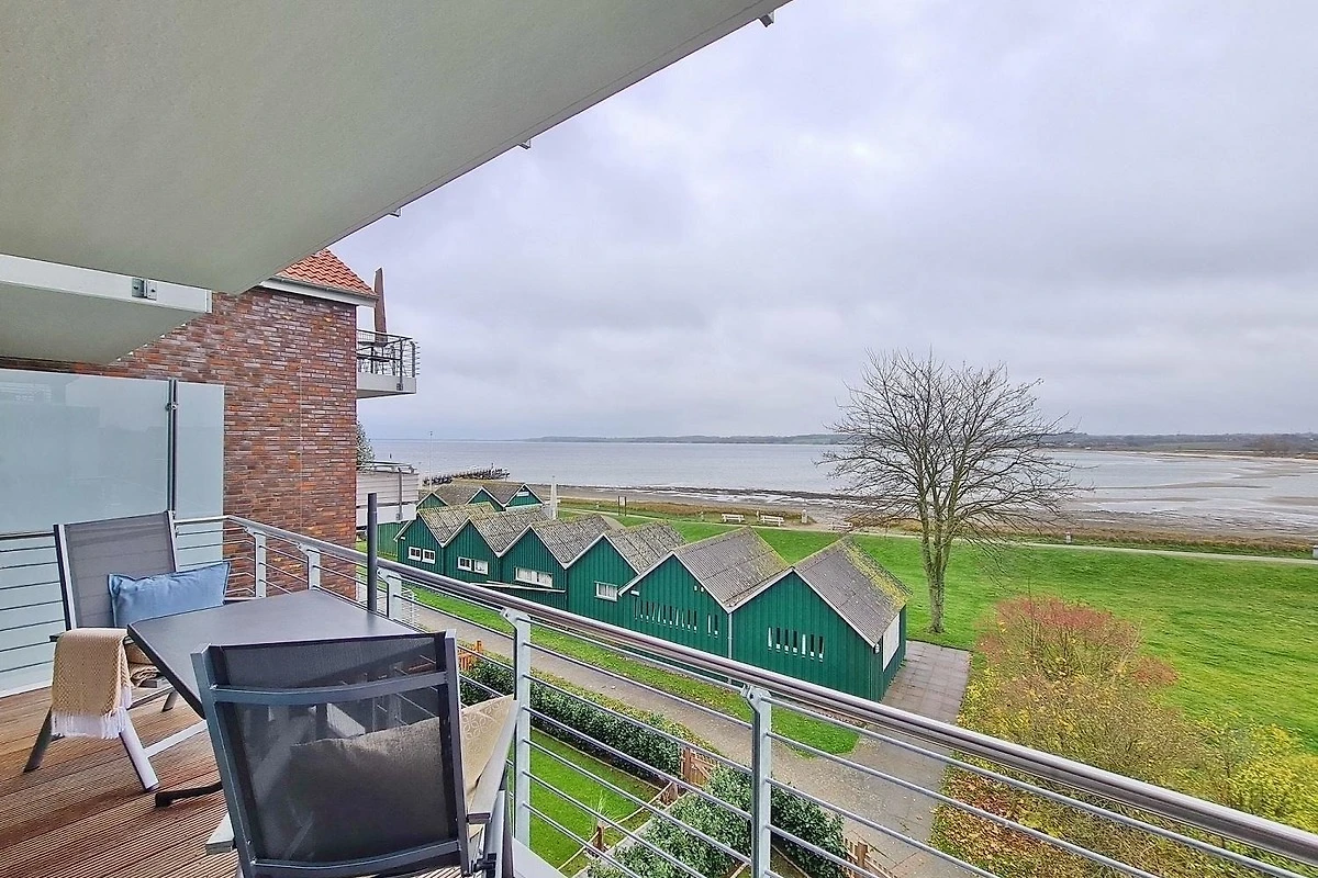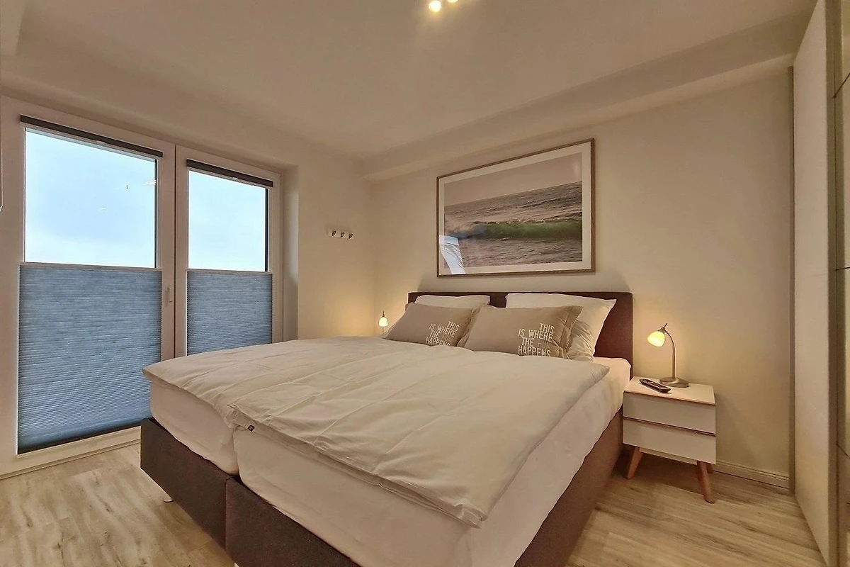 Die Ferienwohnung „Pier 23“ im Haus "Meeresblick" bietet eine moderne und hochwertige Unterkunft im 2. Obergeschoss, geeignet für bis zu drei Personen. Der kombinierte Wohn- und Essbereich beeindruckt mit grossen Fenstern zum Balkon und bietet einen wunderschönen Meerblick. Ein grosses Sofa, das als Schlafsofa genutzt werden kann, sowie ein Flachbildfernseher sorgen für gemütliche Abende. Die gut ausgestattete Küche verfügt über eine Geschirrspülmaschine, einen Induktionsherd, einen Backofen und einen Kühlschrank mit Gefriermöglichkeit. Das Schlafzimmer ist mit einem Boxspringbett (180x200) und einem geräumigen Kleiderschrank ausgestattet. Das Badezimmer bietet eine Dusche und ausreichend Stauraum. WLAN ist kostenlos verfügbar. Ein fester Parkplatz sowie Unterstellmöglichkeiten für zwei Fahrräder sind ebenfalls vorhanden. Haustiere sind nicht erlaubt.