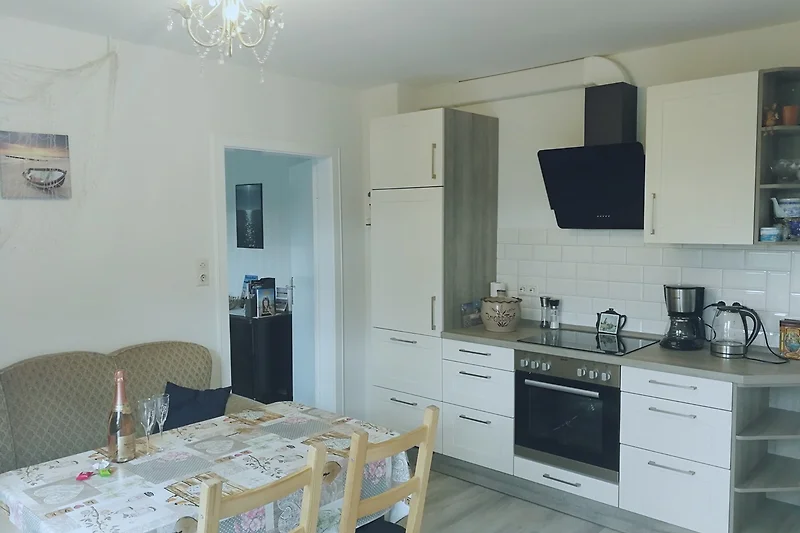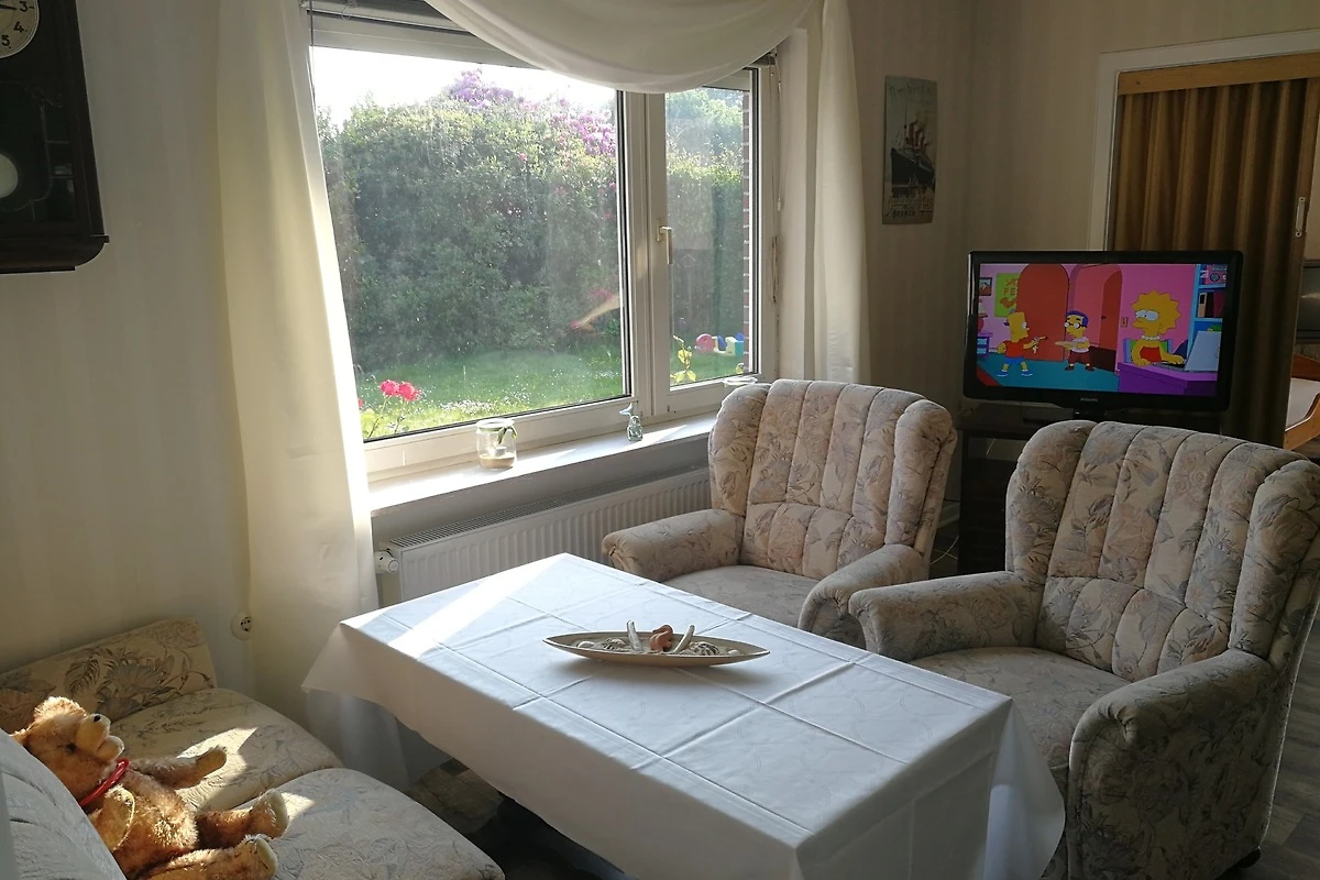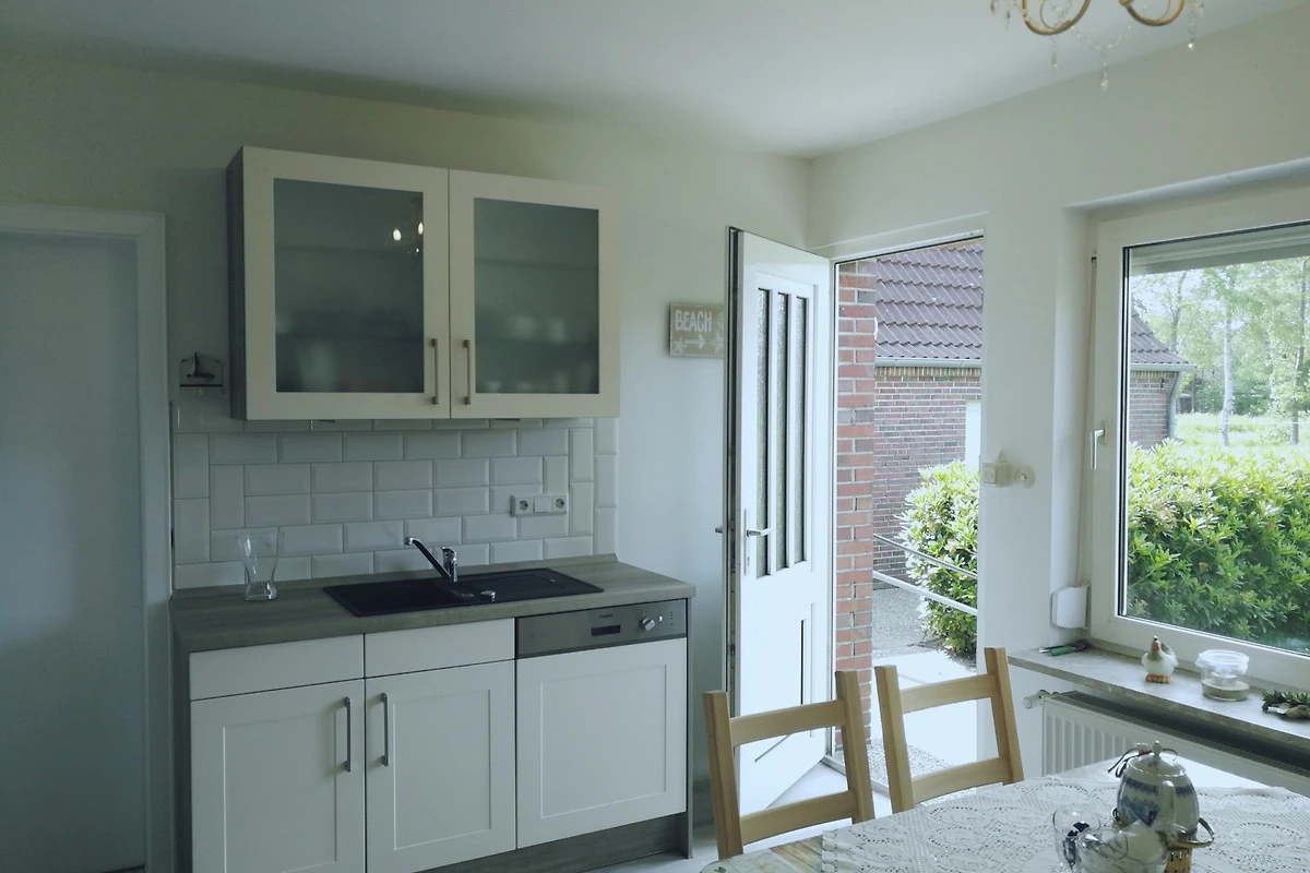 Die Ferienwohnung ist im Luftkurort gelegen, Bäckerei mit Café (1,3 km entfernt), Badesee mit Kurpark sowie Schwimmbad/Sauna, Restaurant, Minigolf, Outdoor-Fitnessgeräten, Tennisplatz und mehr nach einem Spaziergang (rund 1,5 Kilometer zum Badesee, dahinter gleich das Kurzentrum) erreichbar. Zu den nächsten Orten und Einkaufsmöglichkeiten sind es rund zehn bis fünfzehn Minuten mit dem Auto. Der nächstgelegene Strand (Naturstrand Hilgenriedersiel) ist etwas über 9 Kilometer entfernt, nach Norddeich sind es 15 Kilometer.