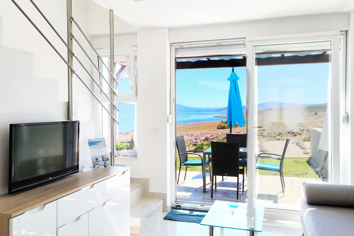 Das Haus ist ca. 90m vom Felsstrand und ca 300m vom Kiesstrand entfernt. An beiden lädt kristallklares, azurfarbenes Wasser zum baden ein.