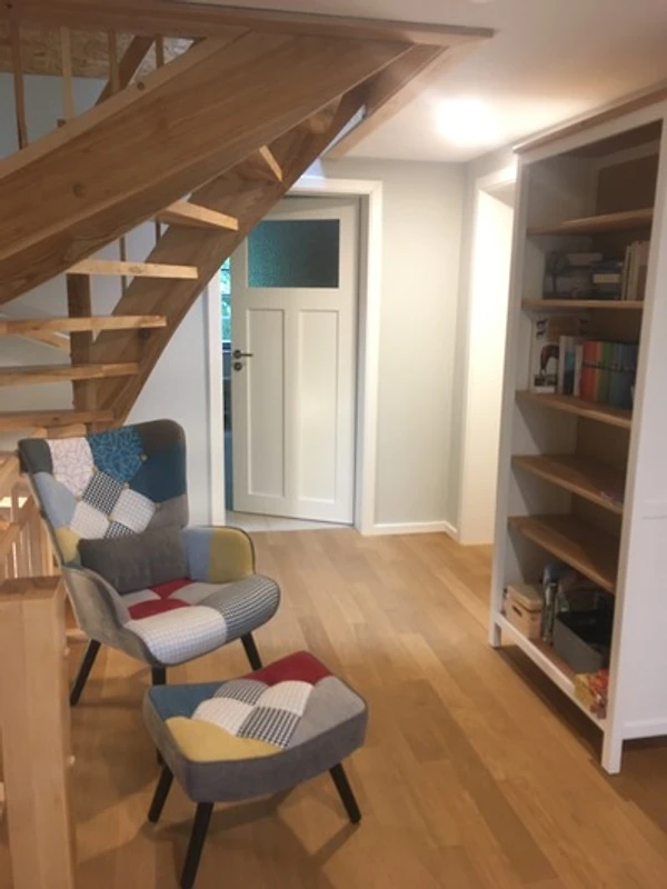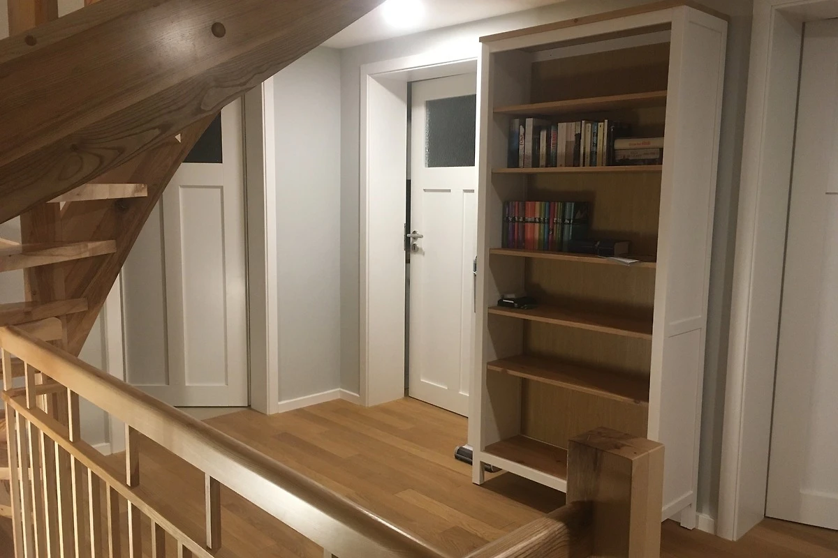 Der Eingang erfolgt auch hier separat von der Fewo im Erdgeschoss. In der vollausgestatteten Wohnküche können gemeinsam die Pläne für den Urlaub in der Region geschmiedet werden. Im grossen Familienbad wartet zudem eine Infrarot-Kanine als stromsparende Saunaalternative auf die Gäste. Herzlich willkommen.