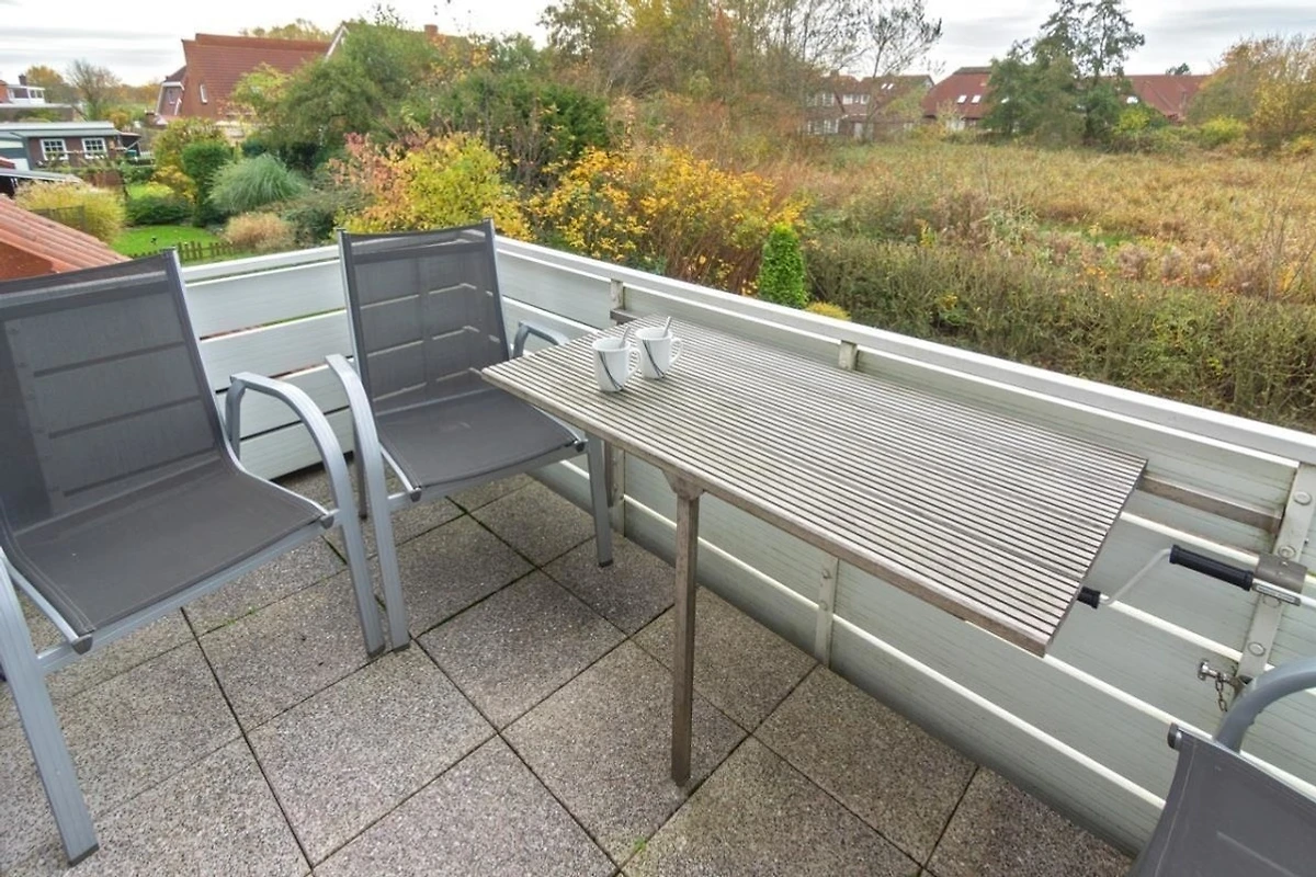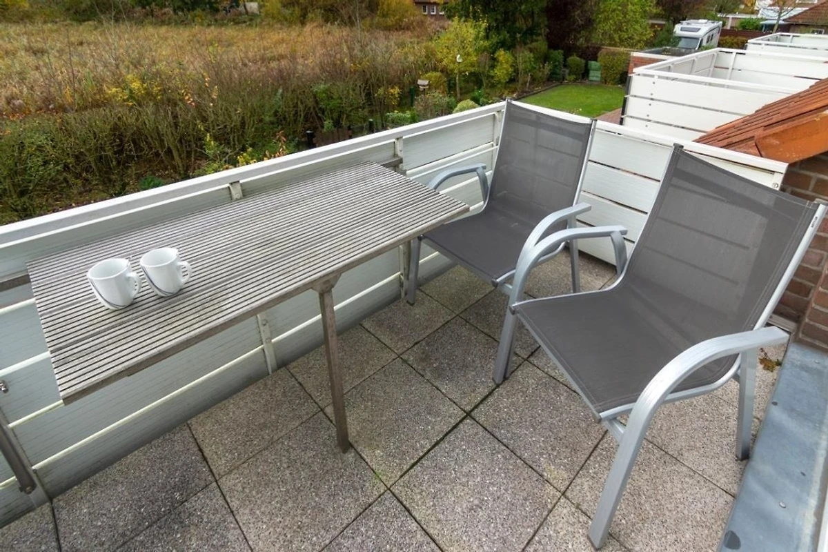 Sonnige und warme Tage lassen sich am schönsten auf dem zur Wohnung gehörenden Balkon geniessen. Dieser ist in westlicher Richtung ausgerichtet, so dass abwechslungsreiche Urlaubstage hier hervorragend ausklingen können. Sie fangen selbst am Abend noch die letzten Sonnenstrahlen ein! Neben einem Blick ins Grüne bietet Ihnen der Balkon ausserdem die Möglichkeit auf den vorhandenen Stühlen ganz entspannt zu verweilen. Ein Tisch steht ebenfalls zur Verfügung.