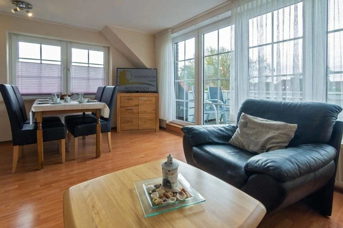 Den Norddeicher Sandstrand erreichen Sie von der Ferienwohnung aus in rund zwanzig Minuten zu Fuss. Noch schneller sind Sie mit dem Fahrrad am Meer.