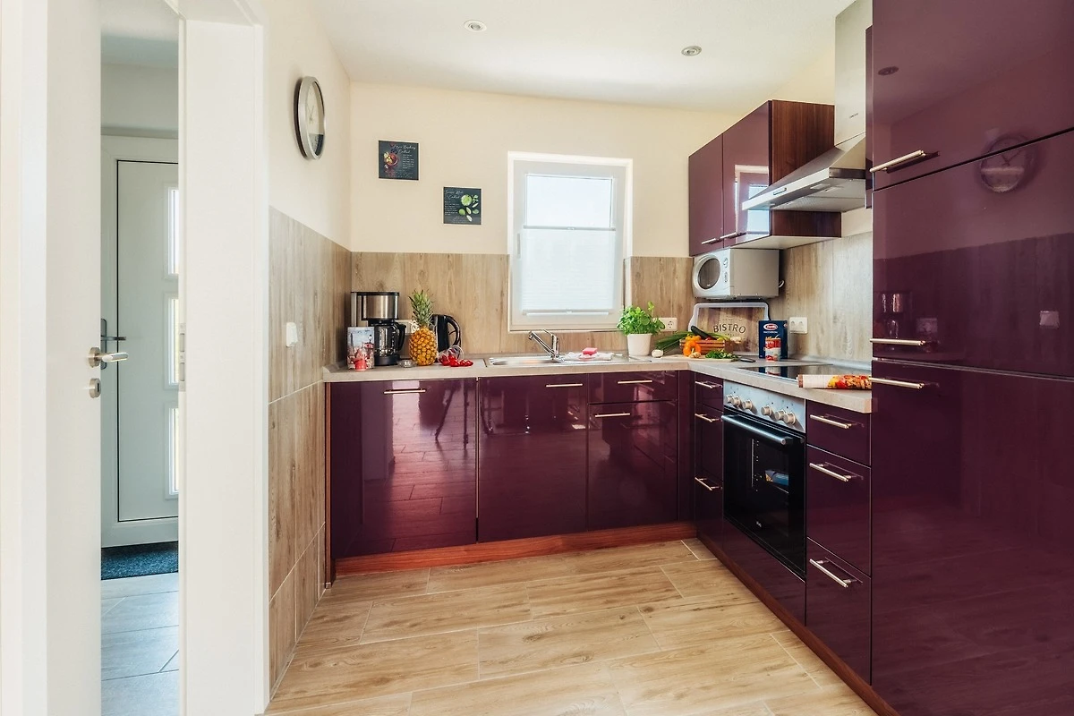 1 moderne vollausgestattete Küche mit Geschirrspüler, Mikrowelle, E-Herd (Ceran) mit Backofen, Kühl-/ Gefrierkombination, Toaster, Kaffeemaschine, Mikrowelle u.v.m.