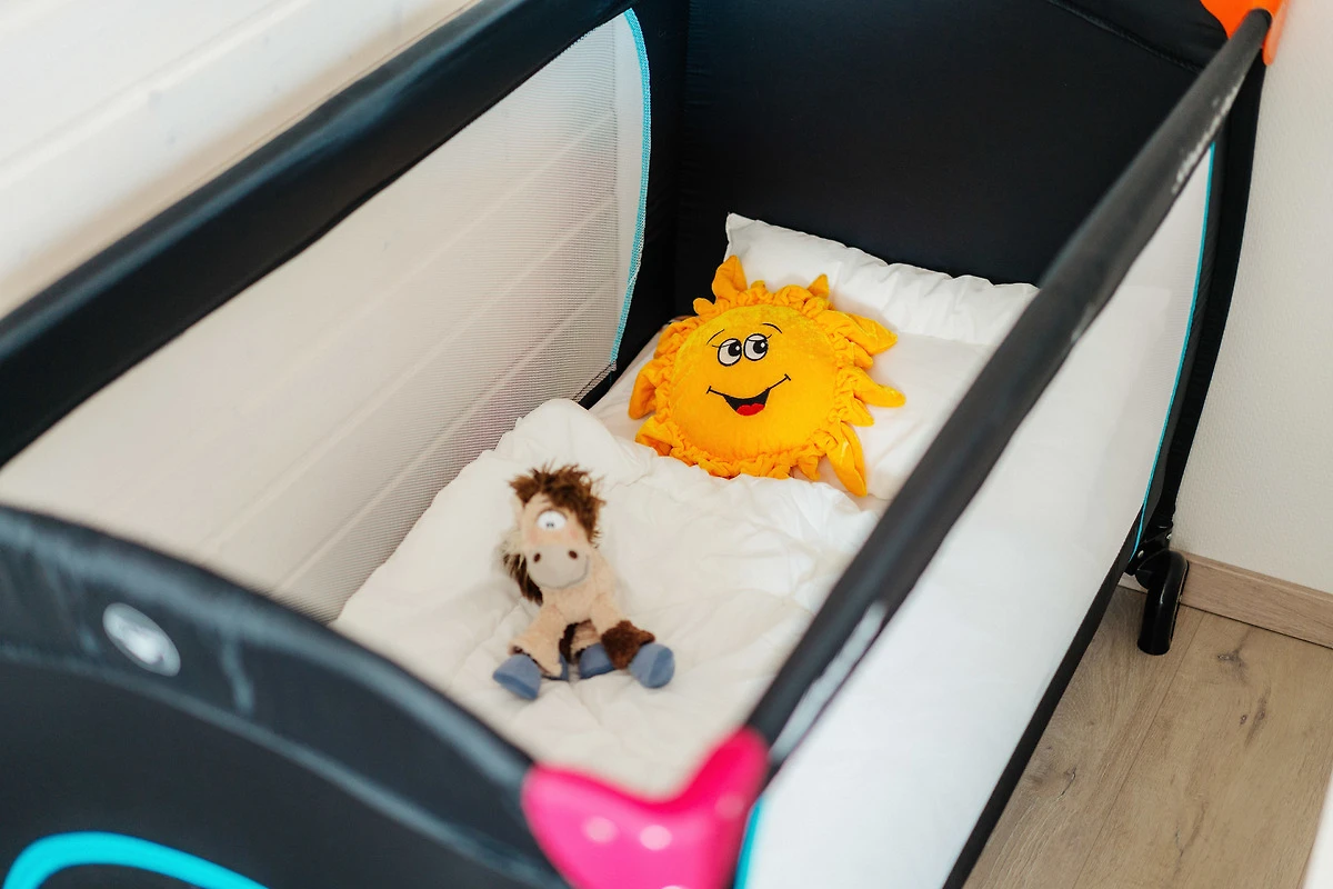 Zusätzlich stehen für unsere jüngsten Gäste in jedem Haus ein Kinderbett mit zusätzlicher Matratze und ein Kinderhochstuhl kostenlos zur Verfügung.