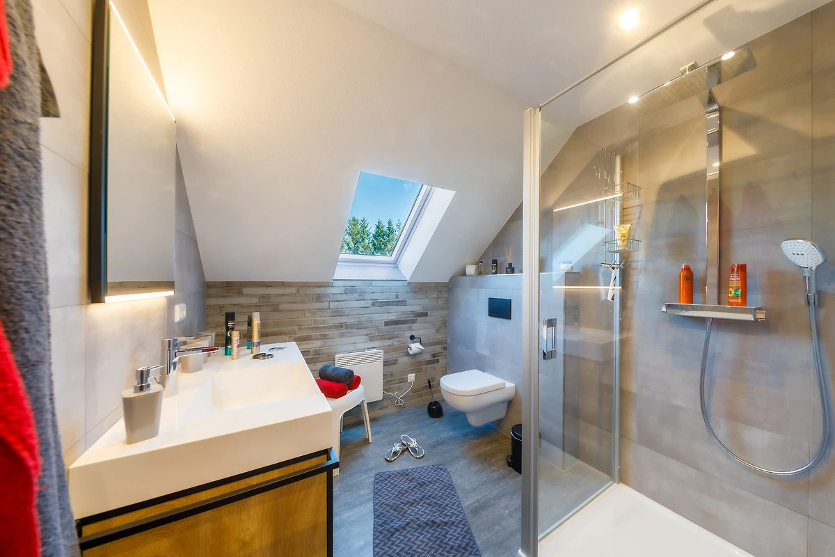 1 Duschbad mit ebenerdiger Regendusche und Föhn