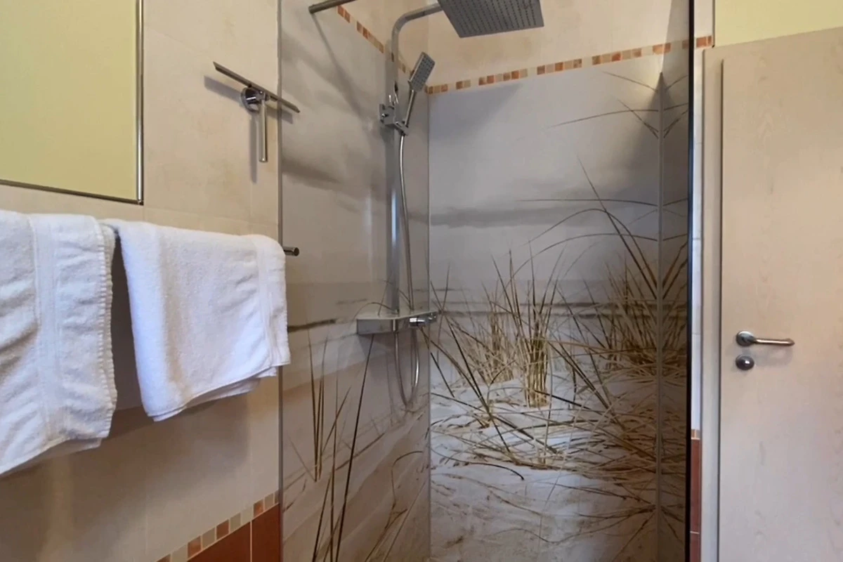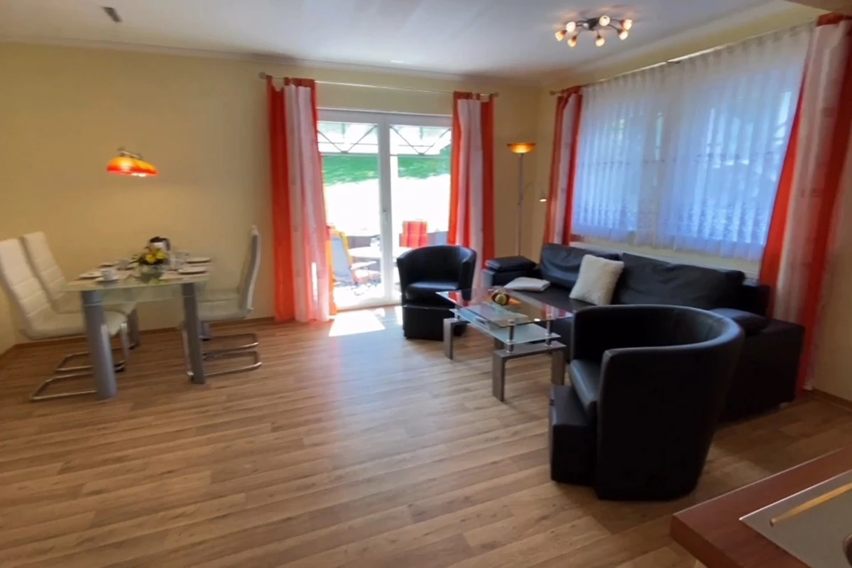 Die einladende 2-Zimmer Ferienwohnung im Haus Wiesengrund ist stilvoll und modern eingerichtet und bietet ein freundliches Zuhause für die schönste Zeit des Jahres, Ihre Ferien oder Ihren Urlaub. Die Ferienwohnung ist von Deutschen Tourismusverband mit 4 Sternen ausgezeichnet worden. Bitte beachten Sie, dass im Haus Wiesengrund das Rauchen in der Unterkunft nicht erwünscht ist. Die 2-Zimmer Wohnung bietet mit ihren ca. 59 m² viel Platz für bis zu 4 Personen. Auf der Terrasse finden Sie je nach Tageszeit immer ein ruhiges Plätzchen zum Frühstücken oder für ein entspanntes Sonnenbad. Von der Terrasse blicken Sie auf die direkt angrenzende saftig grüne und malerisch hügelige Wiesenlandschaft. Die offene Wohnküche lässt kaum Wünsche offen: ein Cerankochfeld, eine Mikrowelle mit Grillfunktion, die Spülmaschine und der Kühlschrank mit Eisfach erleichtern das Urlaubsleben. Diese Fewo bietet ein komfortables Duschbad. Bei der Wohnung ist der grosszügig geschnittenen Wohnraum neben einem bequemen Sofa mit Kabel-TV und DVD-Player sowie mit einer kleinen Stereoanlage ausgestattet. In der 2-Zimmer Wohnung finden Sie ein separates Schlafzimmer mit Doppelbett. Bei der Wohnung ist die Couch im Wohnzimmer mit wenigen Handgriffen in einen bequemen Schlafplatz 140cm x 200cm für 2 weitere Personen verwandelt. Von unserer Ferienanlage Mönchgut ist es nur ein kurzer Fussmarsch von ca 150m bis zum Strand und der Ostsee.