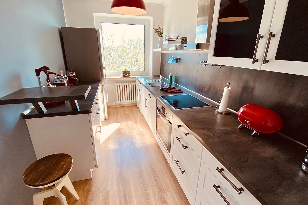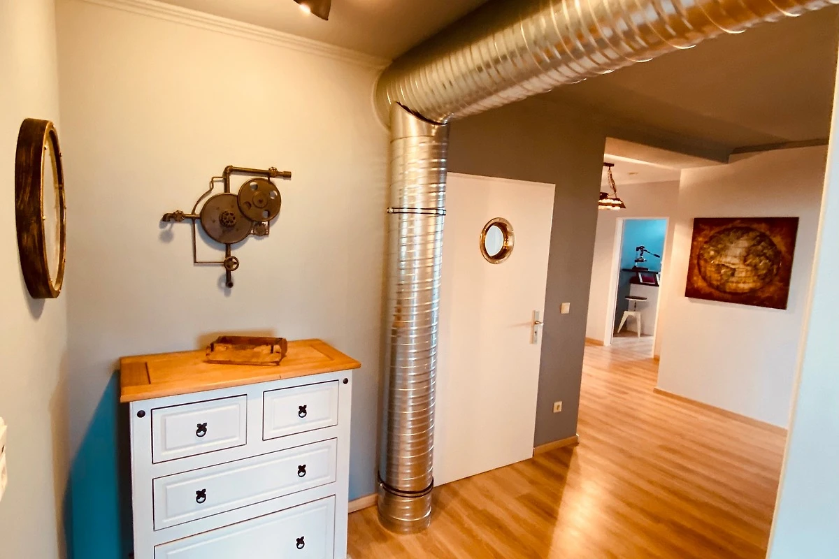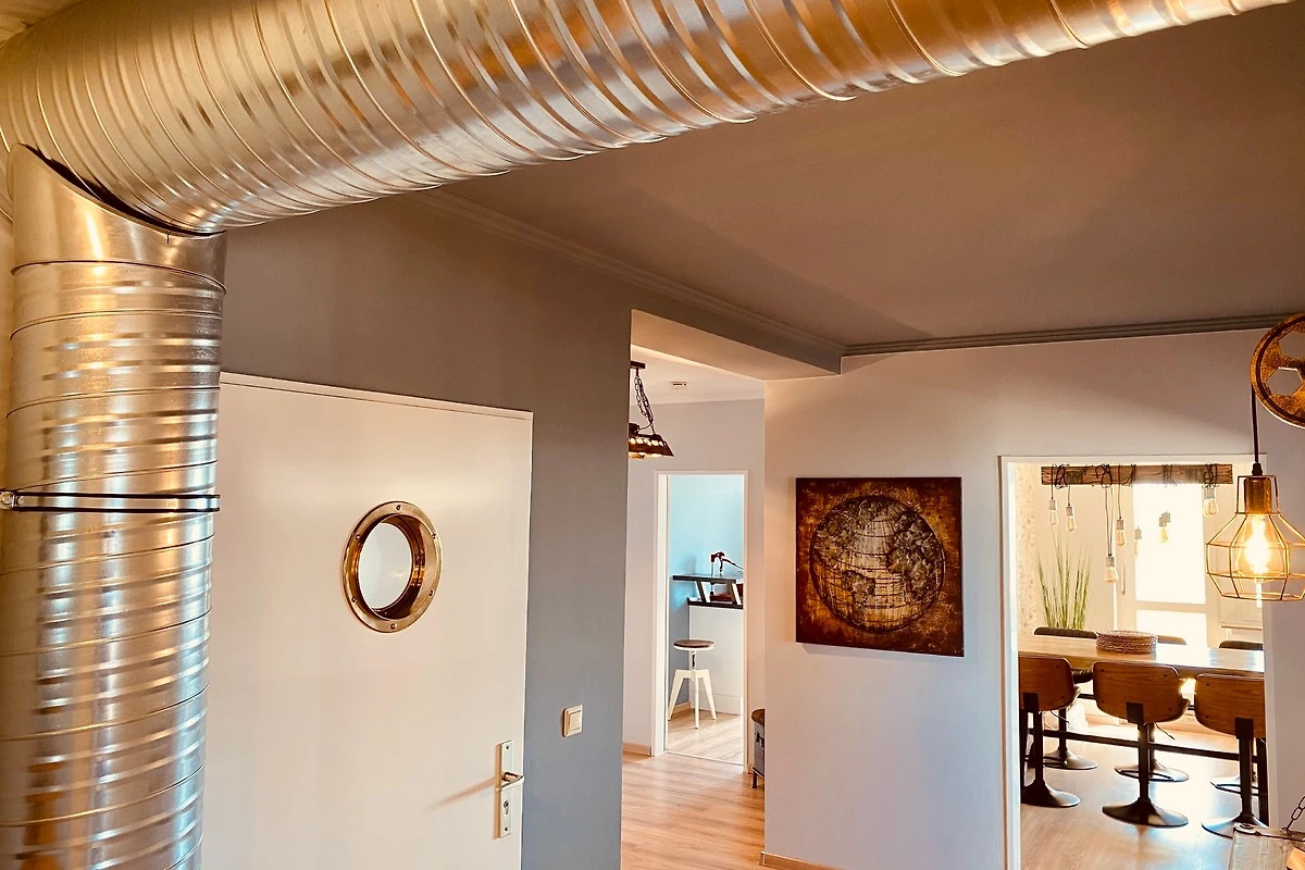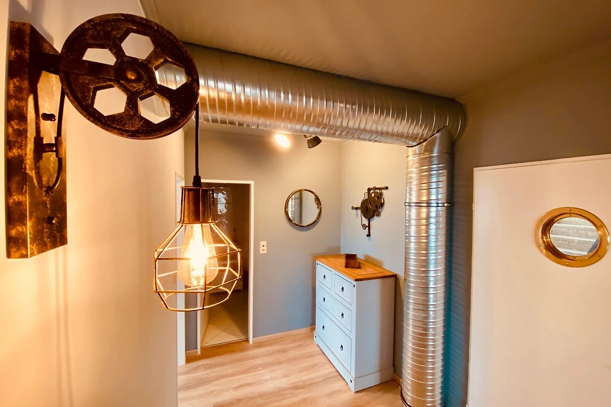 Unsere Themenwohnung befindet sich im 5. Stock (von 7) des Tecklenborg Hauses auf dem ehemaligen Gelände der namensgebenden Traditionswerft Tecklenborg. Von hier aus gelangen Sie fussläufig in die Innenstadt und zu den