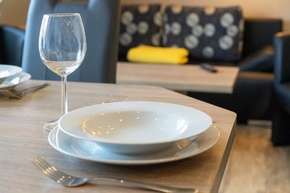 Abzugshaube, Backofen, Herd, Kaffeemaschine, Kühlschrank, Geschirrspüler in der Küchenzeile, Mikrowelle, Mixer, Toaster, alle erforderlichen Küchengeräte, Geschirr, Gläser, Becher usw. Die Essecke mit Sitzgelegenheiten ist gross genug für einen zustellbaren Kinderhochstuhl.