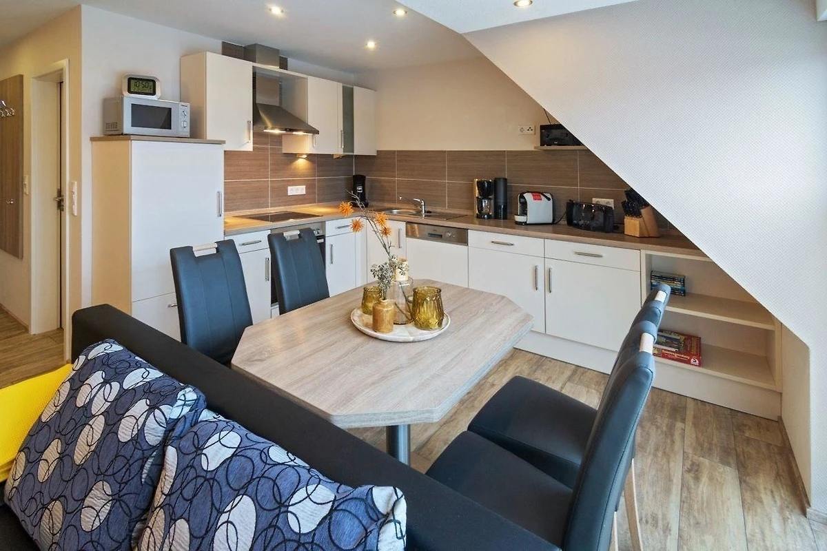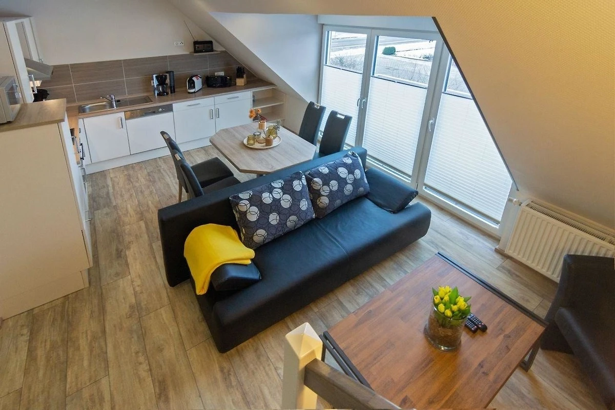 Diese neu gebaute Ferienwohnung liegt im Obergeschoss eines Ferienhauses in zentraler und ruhiger Lage in Norddeich.