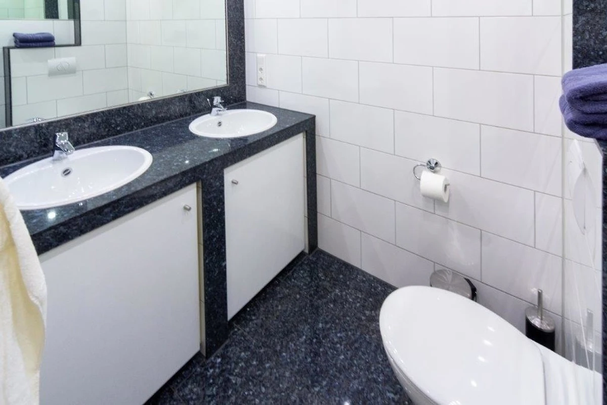 Das zweite Schlafzimmer ist mit einem Doppelbett ausgestattet. Dazu gehören zwei Nachttische und natürlich dürfen einer Wecker oder Radiowecker und die beiden Nachttischlampen nicht fehlen. Ein Babybett kann hier ebenfalls zugestellt werden.