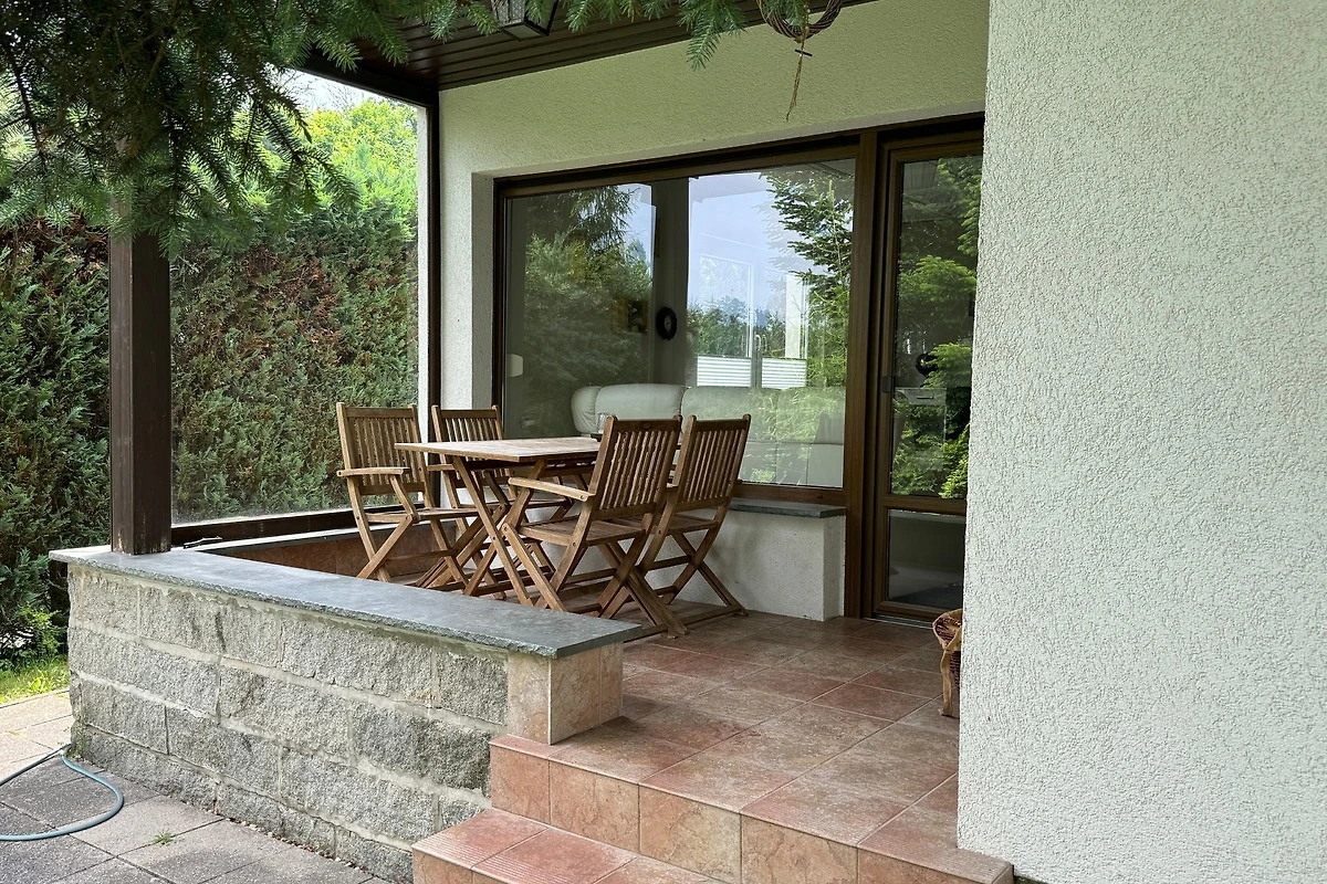 Das Haus liegt in einer ruhigen Bungalowsiedlung, direkt am Wald (50 Meter entfernt). Das Gebäude hat eine Grösse von 75qm, und verfügt über 2 Schlafzimmer. Das 1.Schlafzimmer hat ein Doppelbett 1,80x2.00, und das 2. Schlafzimmer hat ein Ausziehbett mit 1,30x2.00. (für 2 Erwachsene er Ungeeignet !!!)