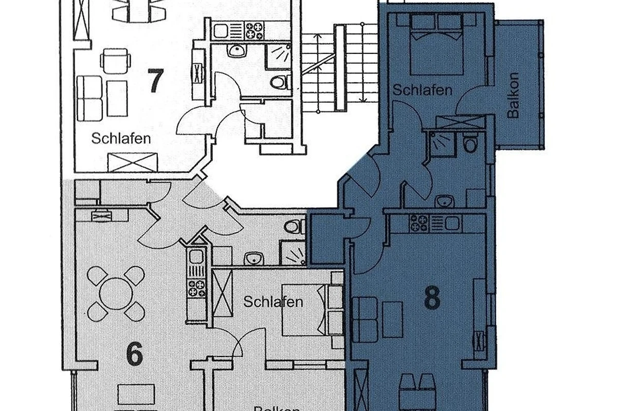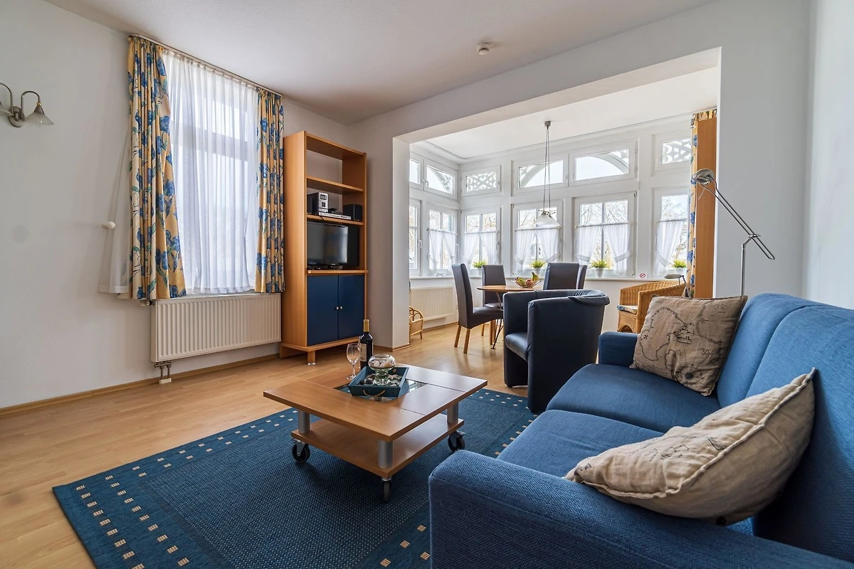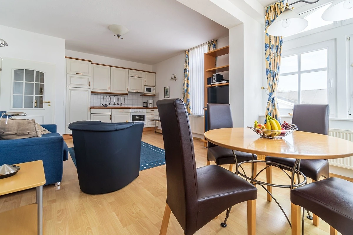 Unser 2- Raum Apartment bietet auf 51 qm Platz für bis zu 4 Personen. Im Wohn/Essbereich ist eine umfangreich ausgestattete Küchenzeile integriert.