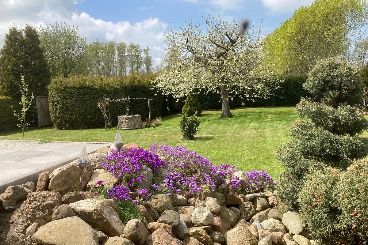Es gibt 3 Schlafzimmer, die alle mit komfortablen Boxspringbetten ausgestattet sind. Ein Schlafzimmer ist mit einem 1,80m breiten Doppelbett ausgestattet, die anderen beiden Schlafzimmer verfügen über je 2 Einzelbetten, die bei Bedarf ebenfalls zu einem Doppelbett zusammen geschoben werden können. Auch tierische Familienmitglieder dürfen hier mit in den Urlaub - bis zu 3 Hunde sind willkommen. Besonderes Highlight - nicht nur für Kinder oder Hunde - ist der ca. 1.000 qm grosse, eingewachsene Garten, in dem man herrliche Sonnenuntergänge mit Blick auf Wiesen und den Dorfteich erleben kann. In der kalten Jahreszeit können Sie es sich vor dem Kamin gemütlich machen - Brennholz stellen wir kostenlos. Der kurtaxefreie Ostsee Sandstrand ist nur 1.300 m entfernt (ca. 15 Gehminuten), in weiteren 200m erreichen Sie den Hundestrand (von Oktober-März dürfen Hunde auch am Badestrand laufen).