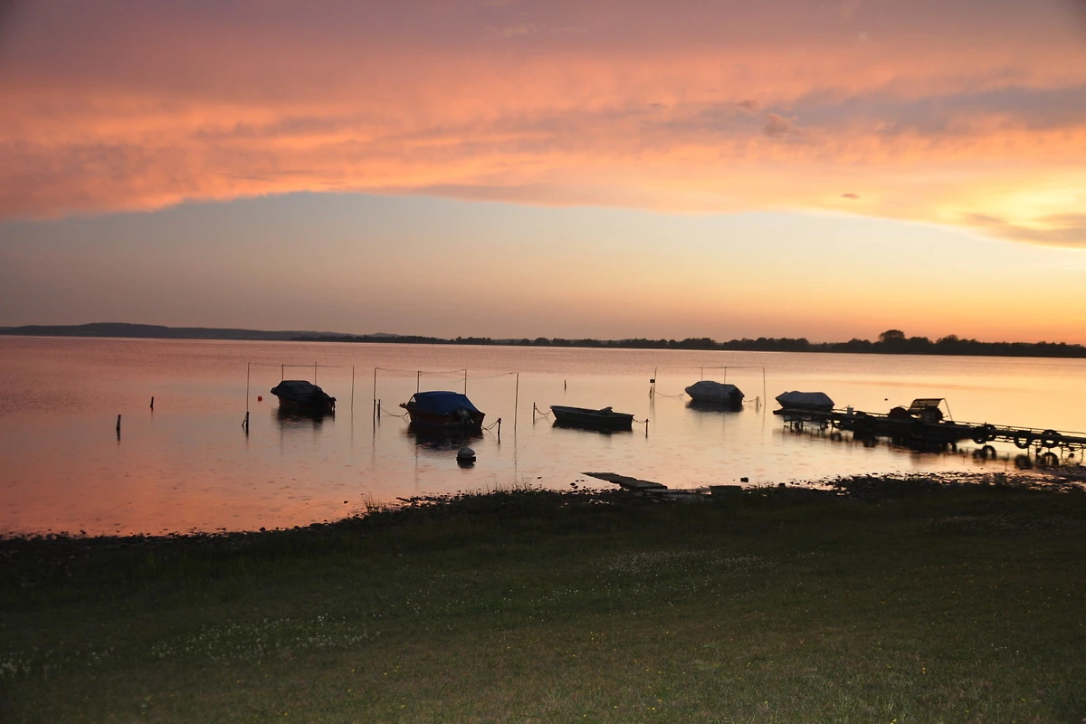 Sie kommen an und geniessen sofort einen traumhaften unverbauten Panoramablick auf den 11 km langen und 4,5 km breiten Kummerower See. Übrigens der achtgrösste deutsche Binnensee. Hier vereinigen sich die Quellflüsse der Peene, die dann 80 km weiter zwischen Festland und Insel Usedom in den Peenestrom und dann in die Ostsee fliesst.