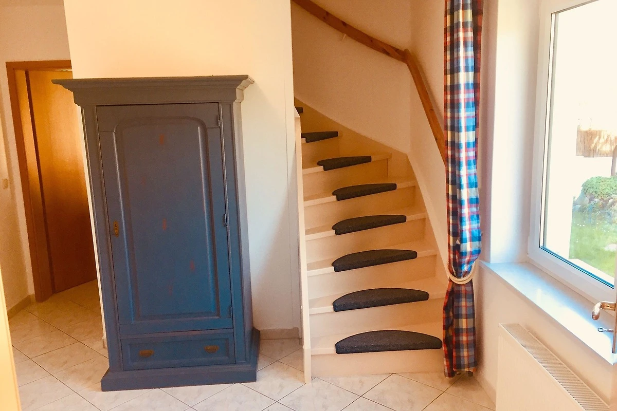 Das Erdgeschoss: Grosser Flur (ca 10 qm), Küche 10 qm Platz; angrenzender Essbereich für bis zu 10 Gäste (ca 13 qm). Ausgestattet ist die Küche z.B. mit Geschirrspüler, Mikrowelle, Toaster, Wasserkocher, Kühlschrank , Filterkaffeemaschine, modernem Kochfeld, jede Menge Stauraum und Arbeitsfläche, etc ....