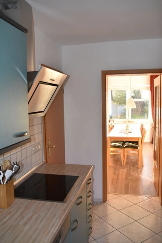 Grosser Flur, Küche mit angrenzendem Essbereich für bis zu 8 Gäste. Ausgestattet ist die Küche z.B. mit einem Geschirrspüler, einer Mikrowelle, einem Toaster, einem Wasserkocher, einem Kühlschrank, einer Filterkaffeemaschine, einem modernen Cerankochfeld. Jede Menge Stauraum und Arbeitsfläche sind vorhanden.