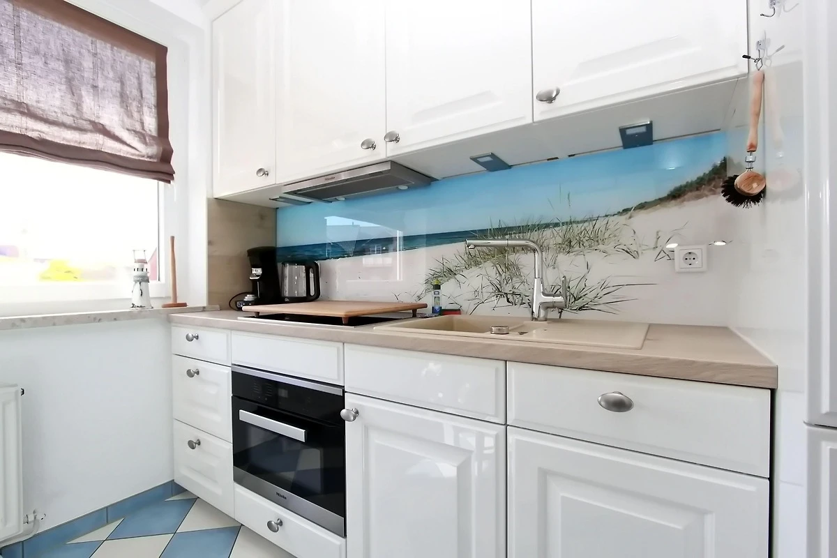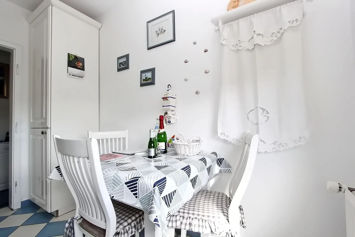 Die neue separate Küche verfügt über ein 4 Platten Cerankochfeld, Backofen, Kühlschrank, Essplatz für 2 Personen, sowie alle Utensilien, die Sie benötigen, um sich selbst zu versorgen. Neues Duschbad/WC; Flur mit Garderobe.