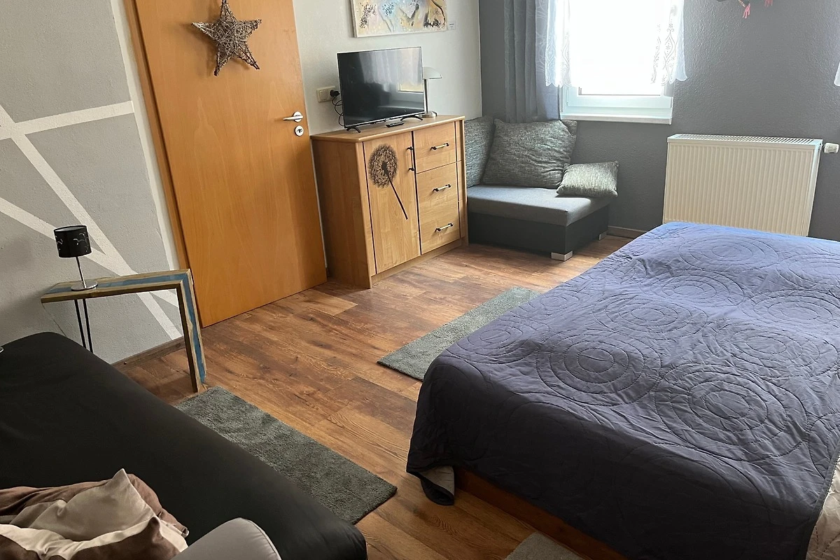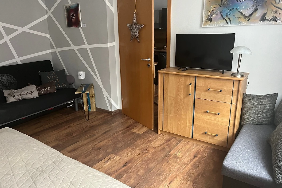 1 grosses Wohnzimmer mit gemütlicher Couch ( bei Bedarf kann diese als Schlafcouch 160 x 200 umgebaut werden, Küchenzeile mit allem was man zum Kochen und Backen benötigt, gemütlicher Sitzecke und Sideboard mit gro0em LCD TV, DVD ´s für Gross und Klein und Radio.