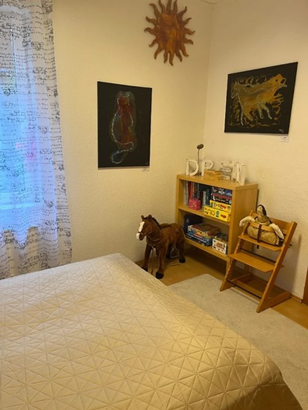 1 weiterem Schlafzimmer gut geeignet für grosse und kleine Kinder. Ausgestattet mit Etagenbett, gemütlicher Couch, Schreibtisch mit Malsachen, Schrank, Sideboard mit LCD TV, DVD Player mit DVDs, Büchern, vielen Spielen, Bastelsachen, Playmobil, diversen Spielsachen und einer Wii mit diversen Spielen..