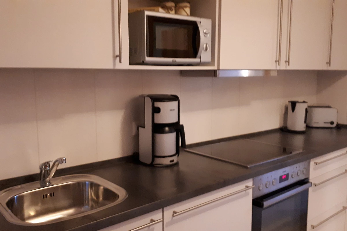 Die Küche ist komplett mit Geschirr, Backofen, Mikrowelle, Geschirrspüler, Kaffeemaschine, Mixer, Wasser- und Eierkocher ausgestattet.