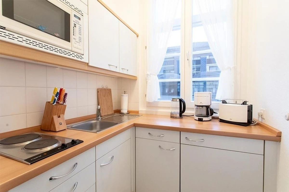 Wasserkocher mit Kaffee-/Teezubehör und Verdunkelungsvorhänge sind vorhanden.