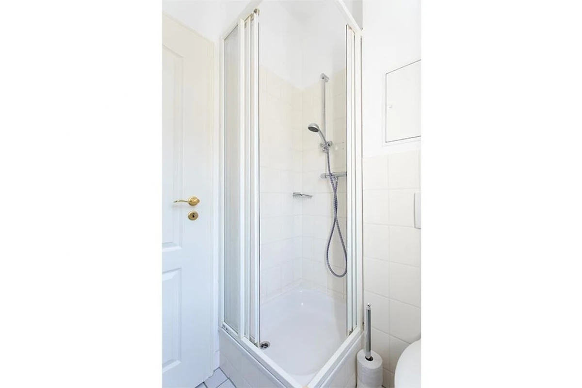 Zur Badausstattung gehört Folgendes: Dusche, Handtücher, Haartrockner.