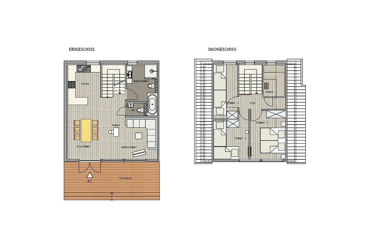 Im Beach 1 gibt es drei Schlafzimmer im Dachgeschoss: