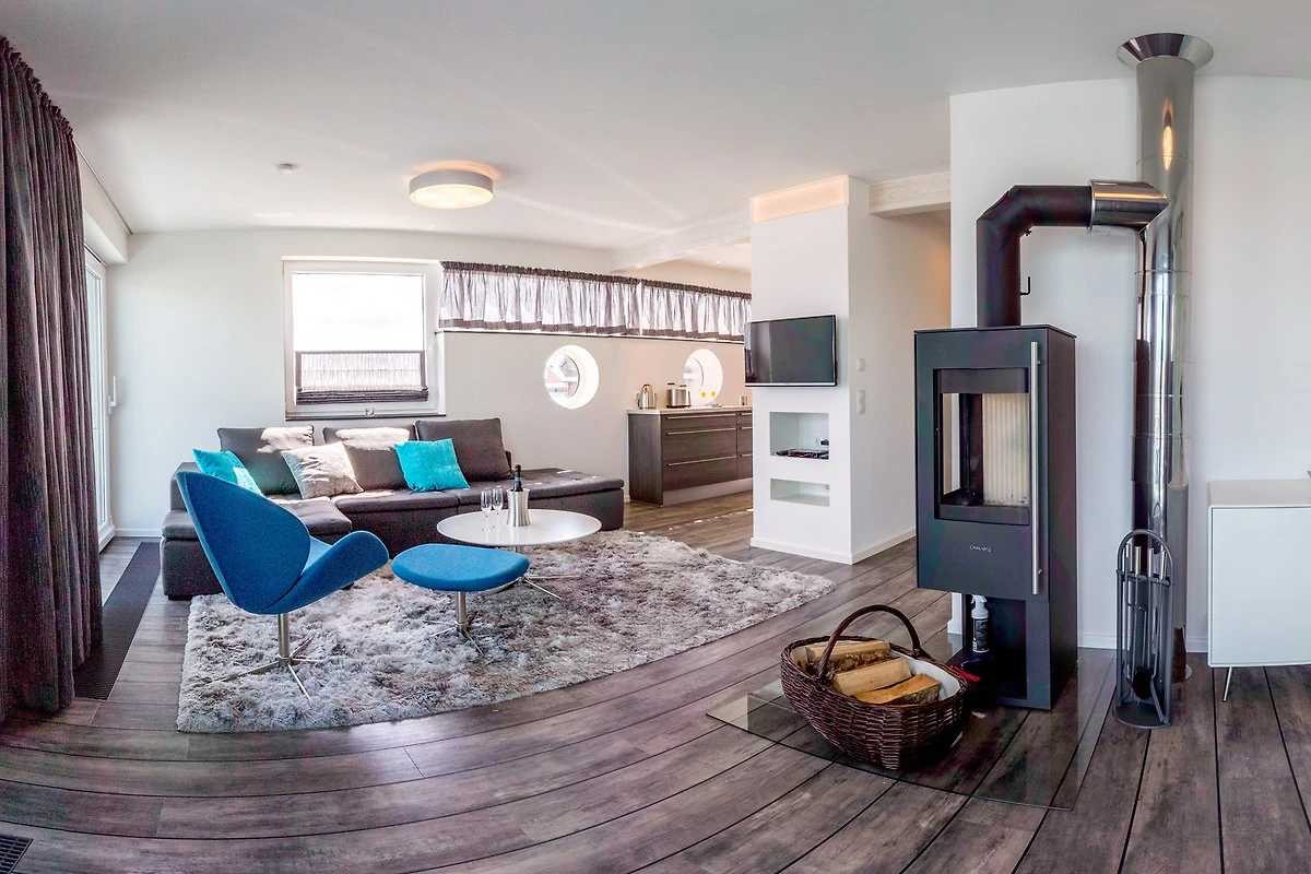 Geniessen Sie erholsame Tage, insbesondere auch im Winter bieten Ihnen unser aussergewöhnliches schwimmendes Ferienhaus aus dänischer Architektenhand Wärme und Behaglichkeit. Entspannen Sie nach einem langen Spaziergang in der Infrarotsauna und machen es sich dann im Wohnzimmer mit einem guten Buch gemütlich bei wohliger Wärme durch den Kaminofen.