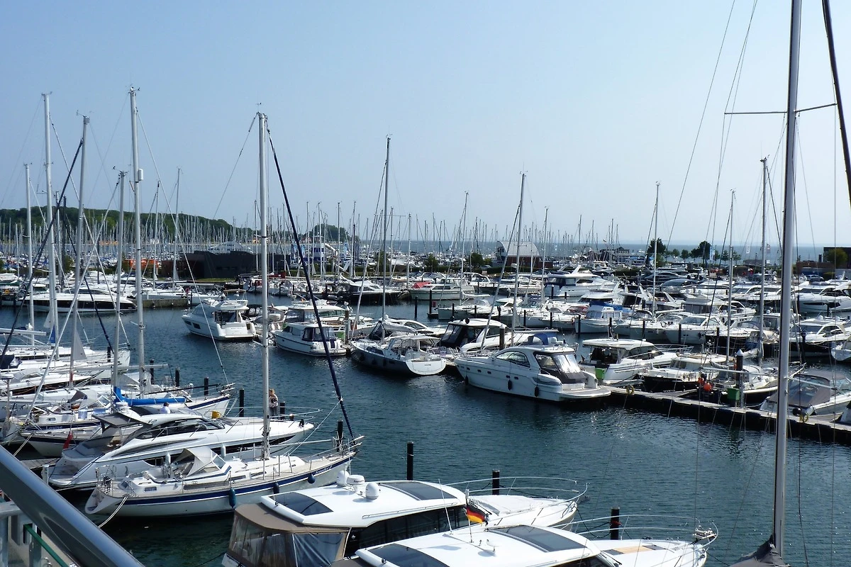 mit Balkon: Blick über den Yachthafen und die Ostsee