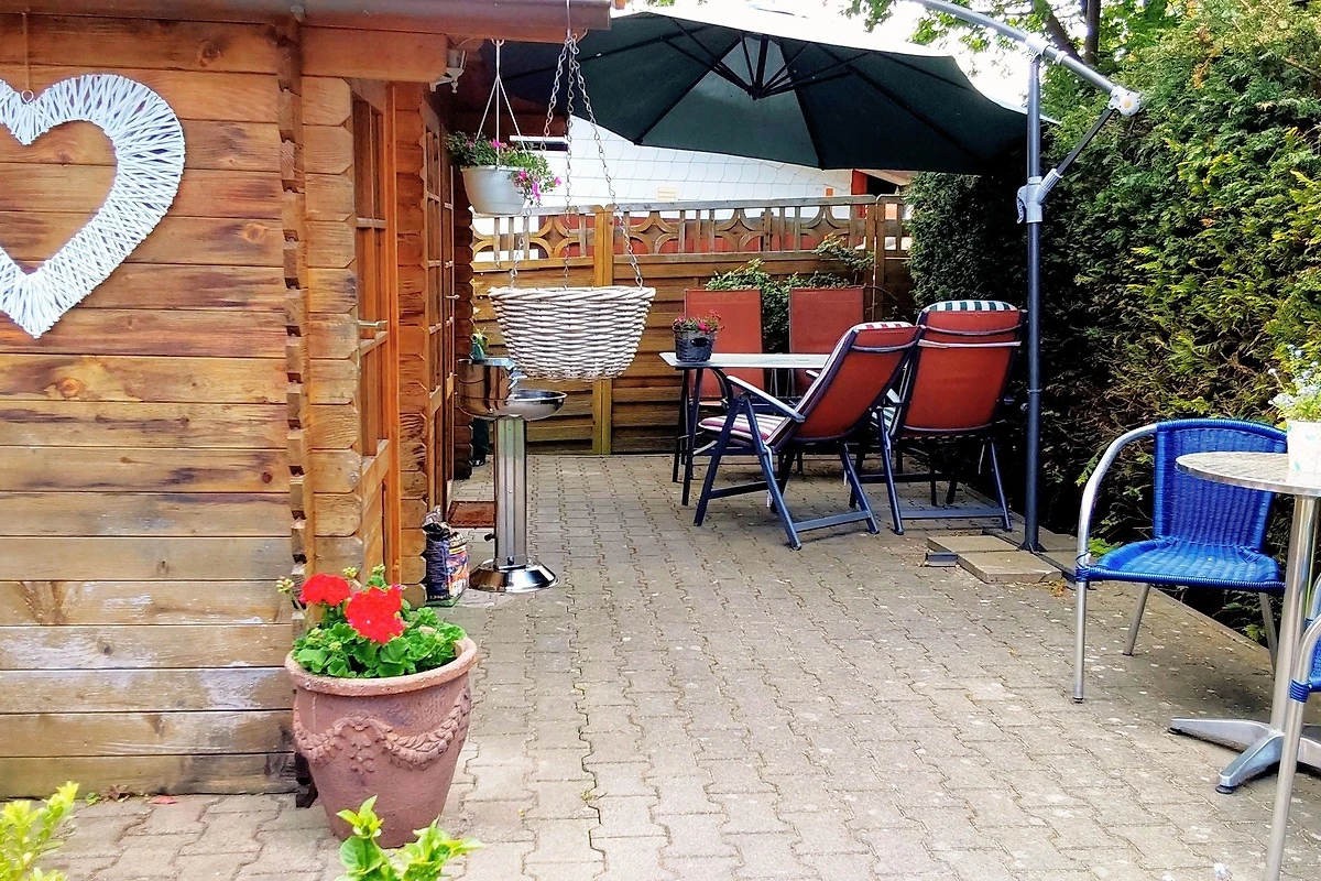 100 m² Gartenparadies mit Terrasse am Gartenhaus und Hollywood-Schaukel