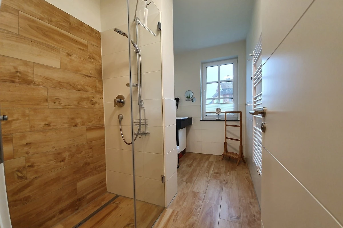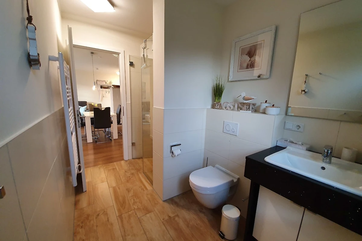 Selbstverständlich ist die Wohnung mit einem modernen Duschbad eingerichtet - Handtuchtrockner, Fön und kleine Extras sorgen für Ihr Wohlbefinden. In der gesamten Wohnung gibt es Fussbodenheizung.