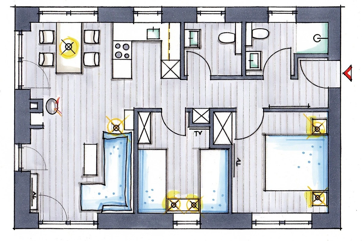 Zur technischen Ausstattung gehören ein Flachbildfernseher (32 Zoll), DVD-/Blu-ray-Player, Stereoanlage (Sonoro) mit Radio, CD-Player, USB-Port, Aux-In und Bluetooth. Selbstverständlich haben Sie in der Wohnung WLAN.