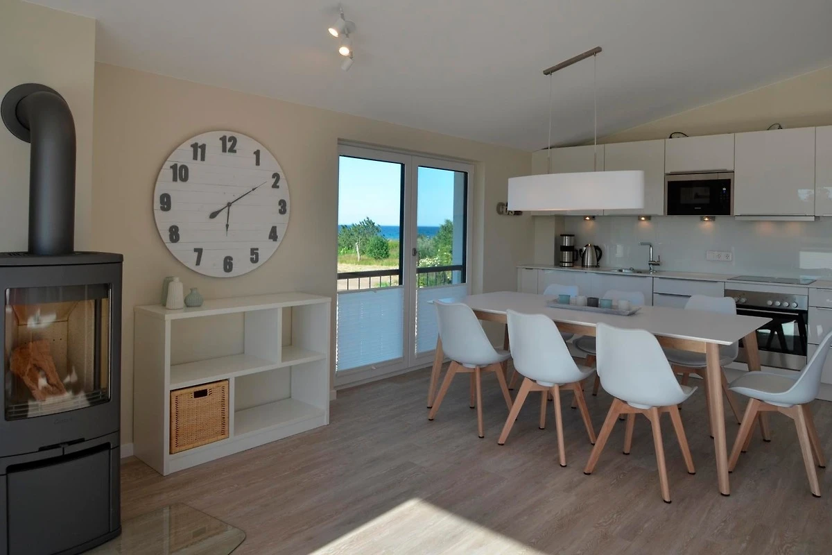 Die grossen, bodentiefen Fenster lassen viel Licht herein und gestatten einen wunderbaren BLICK AUF DIE OSTSEE.