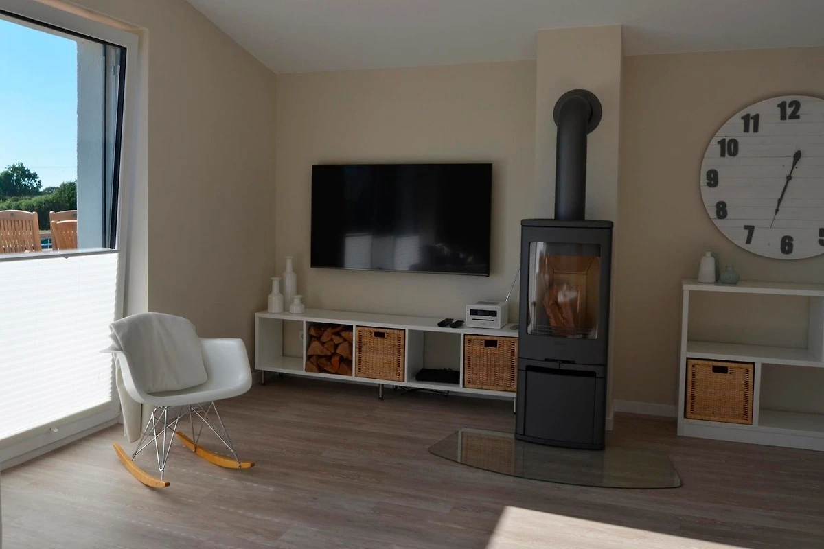 Zur technischen Ausstattung gehören ein grosser Flachbildfernseher (55 Zoll), DVD-/Blu-ray-Player, Stereoanlage (Sonoro) mit Radio, CD-Player, USB-Port, Aux-In und Bluetooth. Selbstverständlich haben Sie in der Wohnung WLAN.