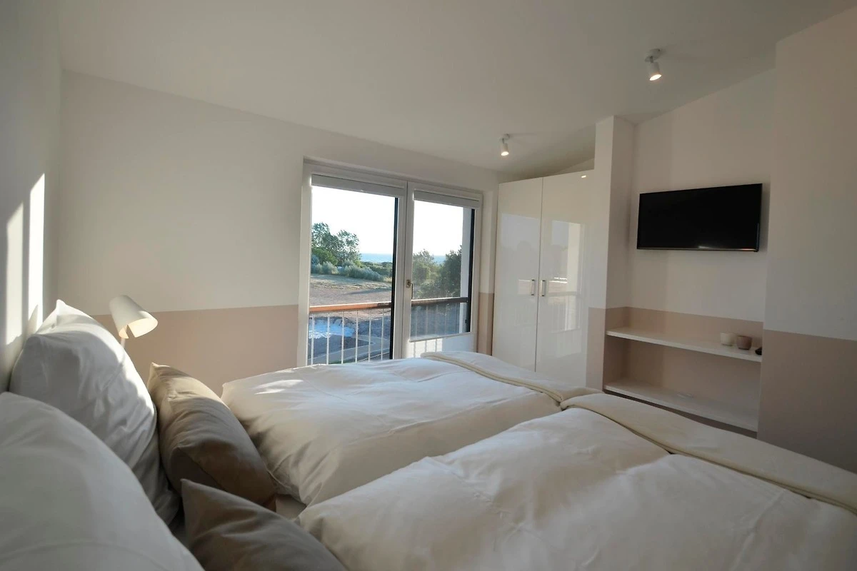 Ein grosser Kleiderschrank bietet hier ebenfalls genug Stauraum für die Urlaubsgarderobe.