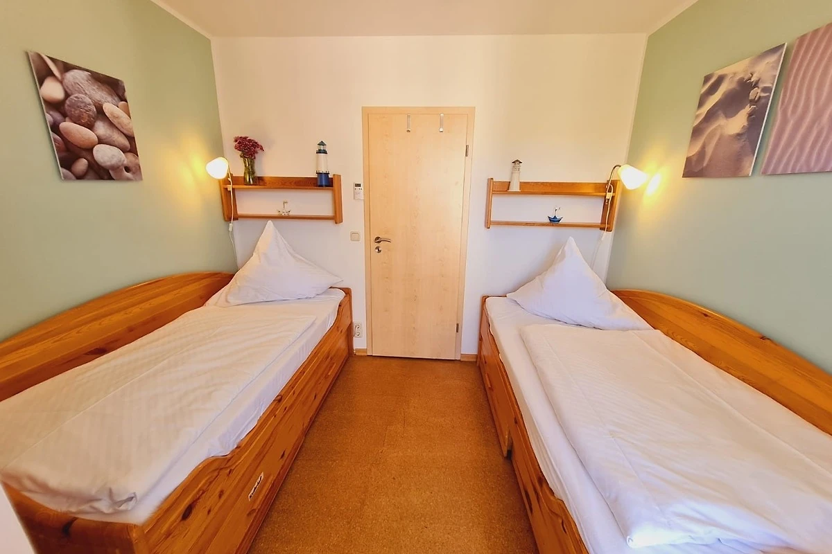 Beide Schlafzimmer sind komplett verdunkelbar. Das helle Wohnzimmer mit offener Einbauküche ist der Mittelpunkt des Appartements. Die Küche bietet Geschirrspüler, Mikrowelle, Ceranfeld, Wasserkocher, Kaffeemaschine, Eierkocher, Toaster, Mixer etc sowie eine grosszügige Ausstattung mit Geschirr, Gläsern und Töpfen. Falls mal notwendig, gibt es auch ein Bügeleisen mit Bügelbrett.
