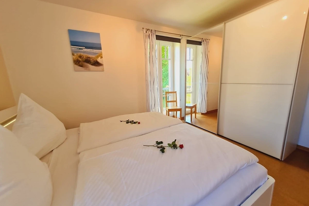 Ideal für Familien mit und ohne Kinder - insgesamt können hier max. 4 Personen ihren Urlaub gemeinsam verbringen. Die Wohnung verfügt über zwei schöne Balkone - jeweils mit Sitzgruppen für vier Personen. Der eine Balkon zeigt nach Südosten, der andere ist nach Südwesten ausgerichtet. So können Sie sowohl den ersten Morgenkaffee als auch das Gläschen Wein am Abend im Freien geniessen! Auf den Liegen können Sie sich sonnen und entspannen.