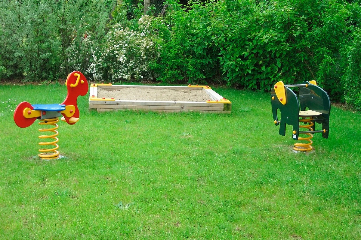 Der Spielplatz in der gepflegten Grünanlage hinter dem Haus bietet Wippen und einen grossen Sandkasten. Neben dem Spielplatz befindet sich eine Sitzgruppe, sowie eine grosszügige Liegewiese.