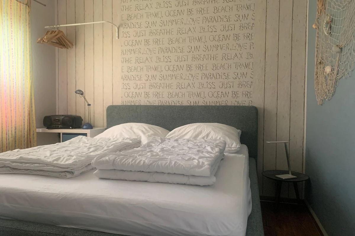 Die Schlafzimmer sind aufgeteilt als Kinderschlafzimmer mit Doppelbett